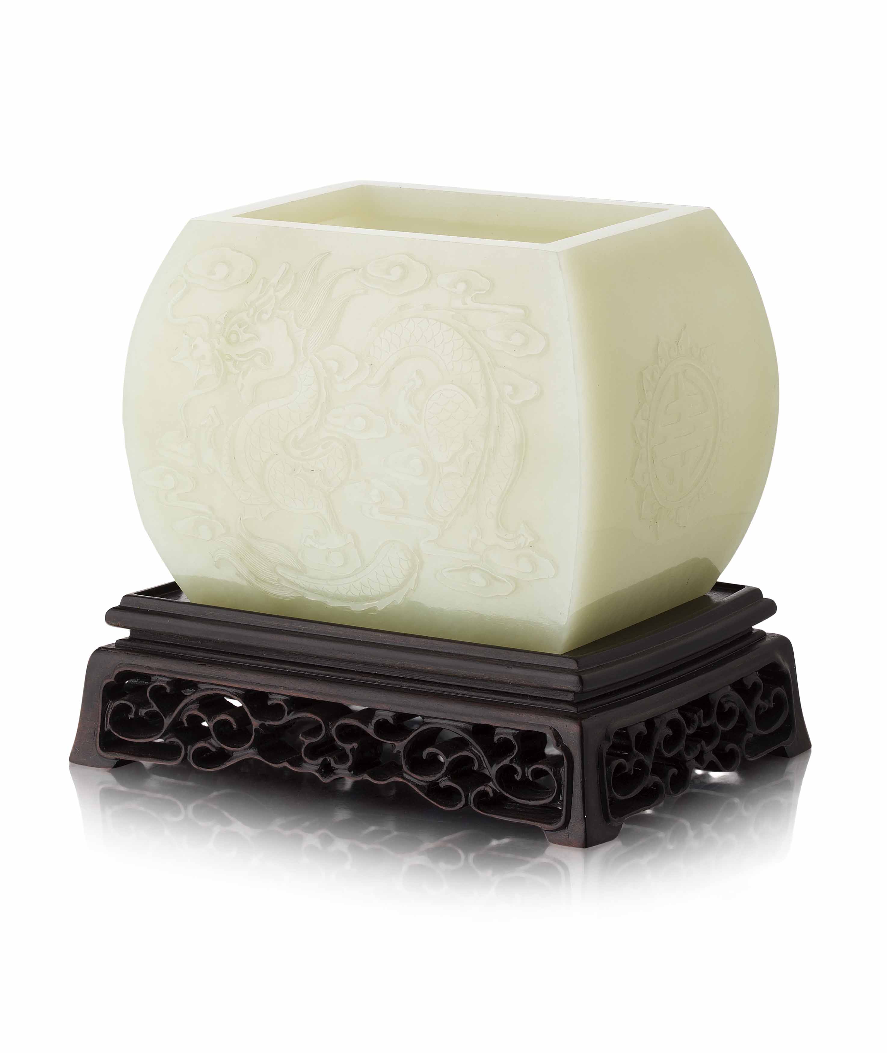WHITE JADE BOMBÉ-FORM 'DRAGON AND PHOENIX' BRUSH WASHER