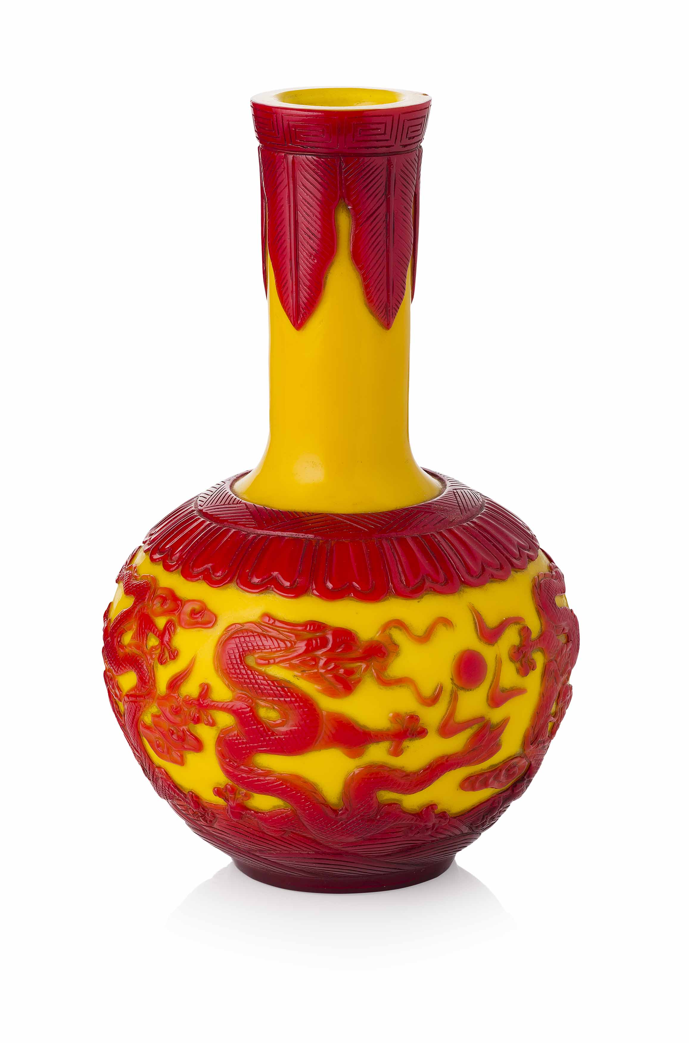 RED-OVERLAY YELLOW-GROUND PEKING GLASS VASE