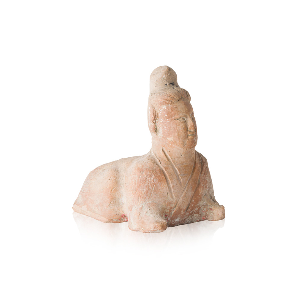 UNGLAZED POTTERY FIGURE OF A COURT ATTENDANT