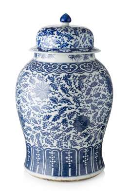 BLUE AND WHITE BALUSTER JAR AND COVER