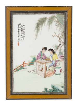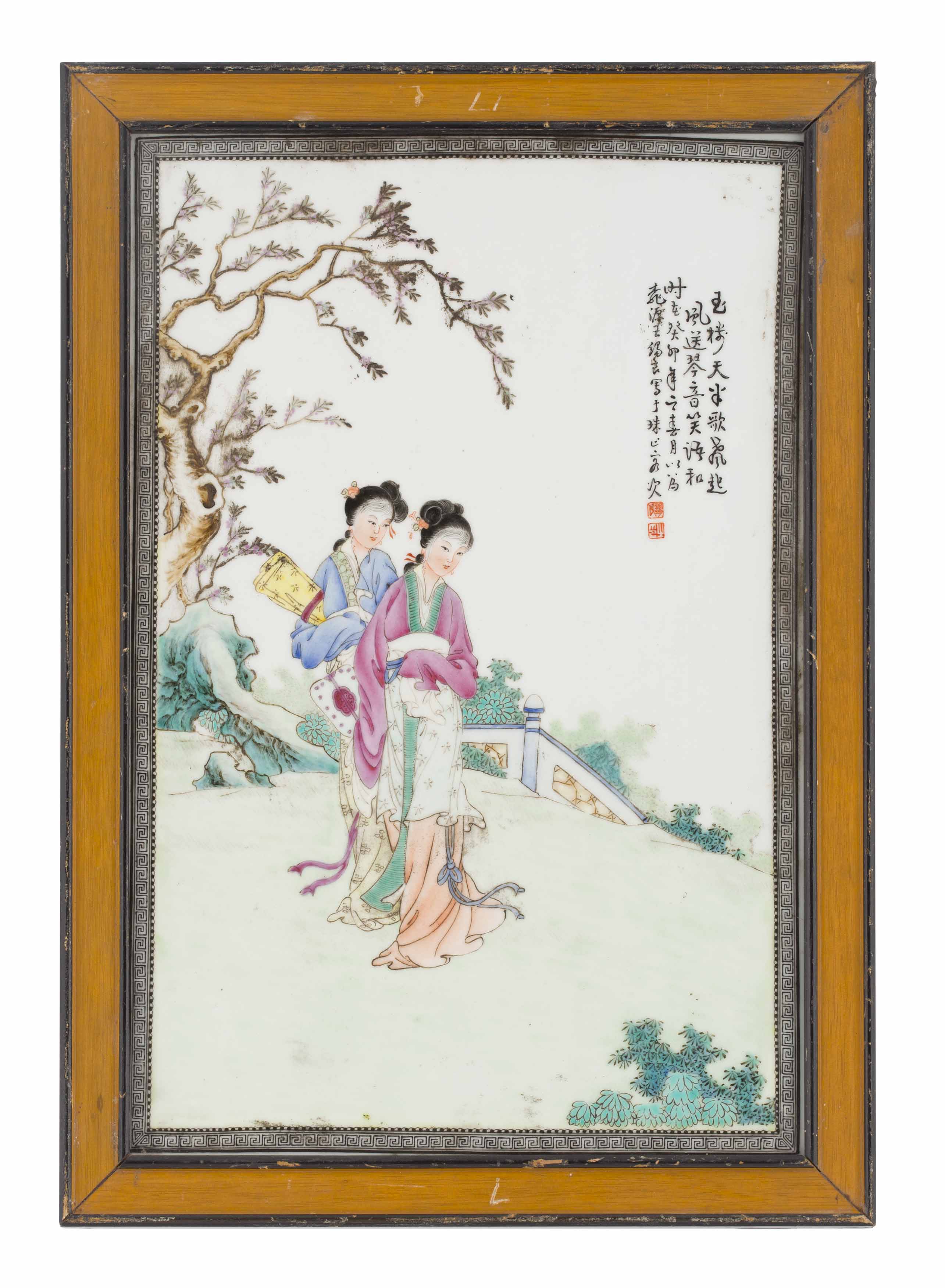 PAIR OF FAMILLE ROSE 'COURT LADIES' PLAQUES