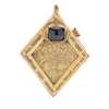 What he discovered, he initially thought was a lady’s powder compact, but in fact proved to be an important late 15th-Century jewel, engraved with religious motifs and set with 10.00ct cabochon sapphire. The front is engraved with an image of the holy trinity below the sapphire, within an inscribed border reading ‘Ecce Agnus Dei qui tollis peccata mundi ... miserere nobis ... tetragramaton ... Ananyzapta’ (Behold the Lamb of God, that takest away the sins of the world. Have mercy upon us …).