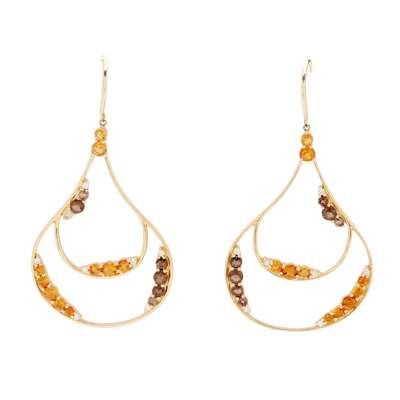 of open drop design, set throughout with graduated round-cut citrines, smokey quartz and diamonds, hook fittings, mounted in 18ct gold