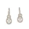 each detachable drop claw-set with an oval-cut diamond in a border of small round brilliant-cut diamonds, suspended from a diamond set bale, mounted in 18ct gold