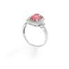 claw-set with an oval-cut orangish-red spinel, in a border of round brilliant-cut diamonds, mounted in 18ct gold