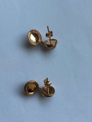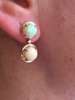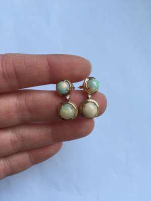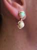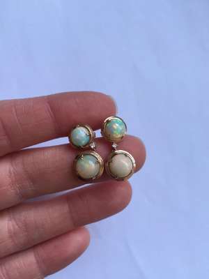 each collet-set with two cabochon opals and a small round brilliant-cut diamond, to post and butterfly fittings, unmarked