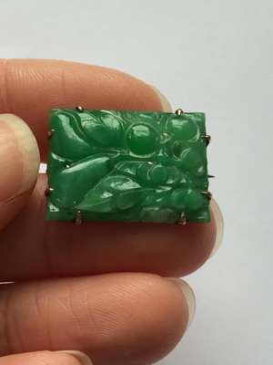 Lots 297-310 are not only a collection of beautiful jewels, very much of their time; but also, a lovely throwback to the exploits of Miss Timmins, and her love of Chinese jades; indeed one could almost imagine one of the jadeite brooches on her lapel, next to her infamous jade cloak hook which sent Lord Scredington so wild with envy as she raced about town in search of her next ‘find’.