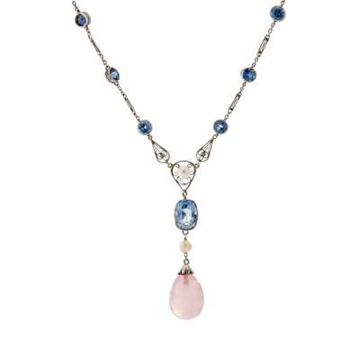 An early 20th-Century sapphire, rose quartz and pearl necklace