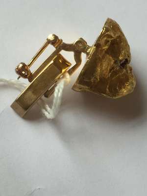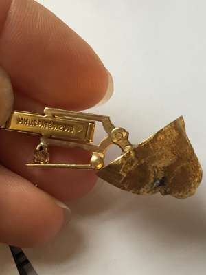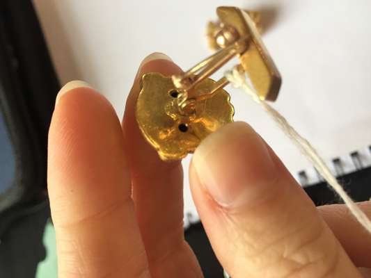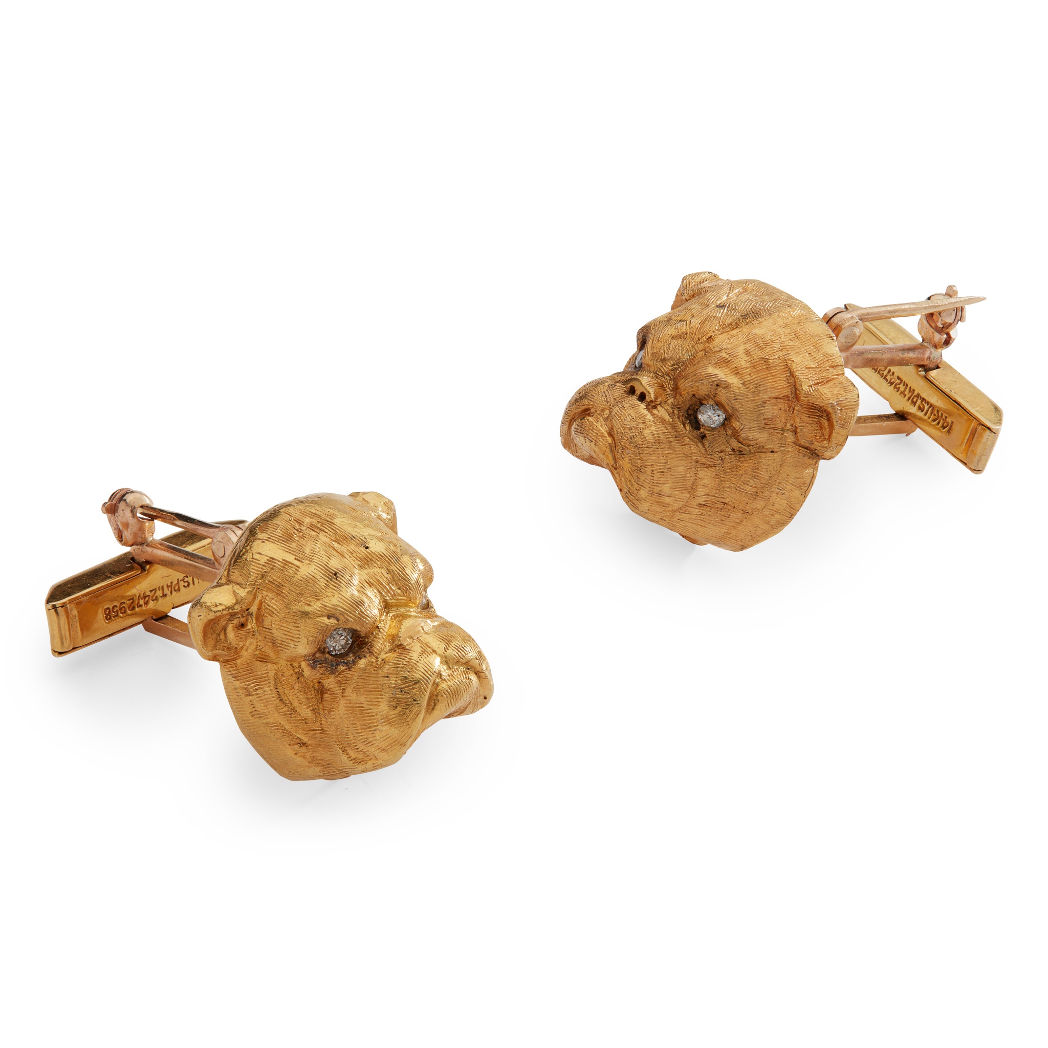 each modelled as a bull-dog with round-cut diamond eyes, stamped 14k