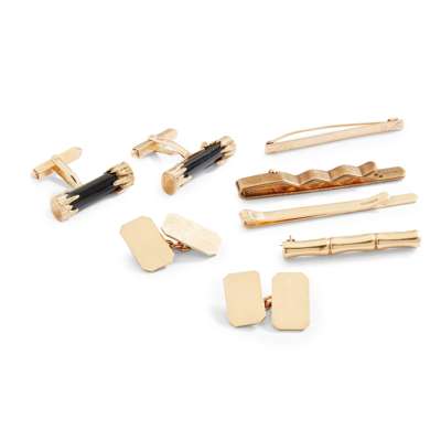 A collection of cufflinks and tie-clips