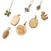 including two 9ct gold lockets, a 9ct gold teddy bear pendant; a 9ct gold Pisces pendant, a pendant modelled as a fir cone, unmarked; a sapphire and diamond pendant, stamped 750; an opal and diamond pendant and a green tourmaline floral pendant, both indistinctly marked