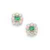 each millegrain-set with a cut-cornered square-cut emerald, in a border of eight round brilliant-cut diamonds, modelled in 18ct gold