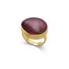 collet-set with a cabochon pink tourmaline, to a plain band, modelled in 18ct gold
