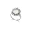 claw-set with an oval mixed-cut aquamarine in a border of eight-cut diamonds, to a plain band, unmarked