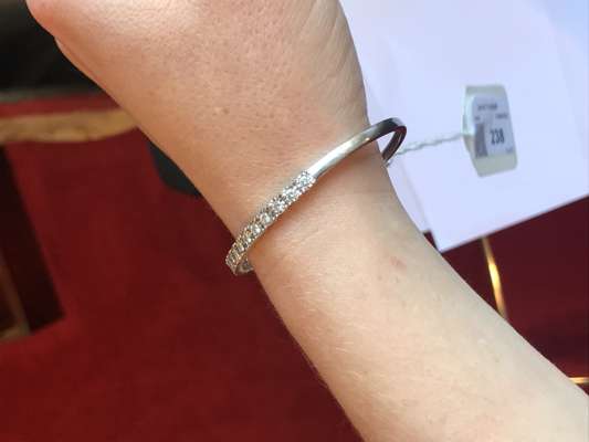 of hinged design, the front set with nineteen round brilliant-cut diamonds, modelled in 14ct gold