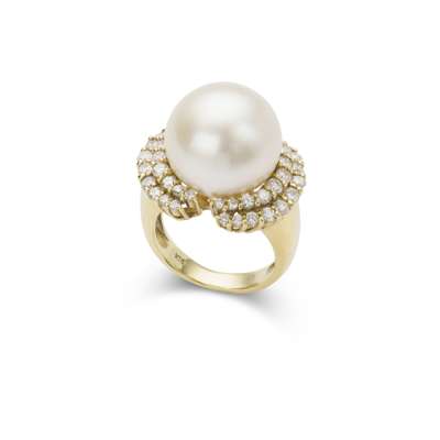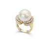 set with a large South Sea cultured pearl, in a double border of graduated round brilliant-cut diamonds, stamped K18