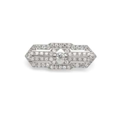 of pierced angular design, millegrain-set with a central old round-cut diamond, set throughout with eight-cut diamonds, stamped 18ct PT