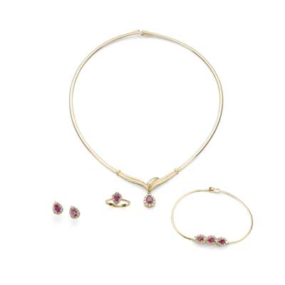 A suite of ruby and diamond jewellery
