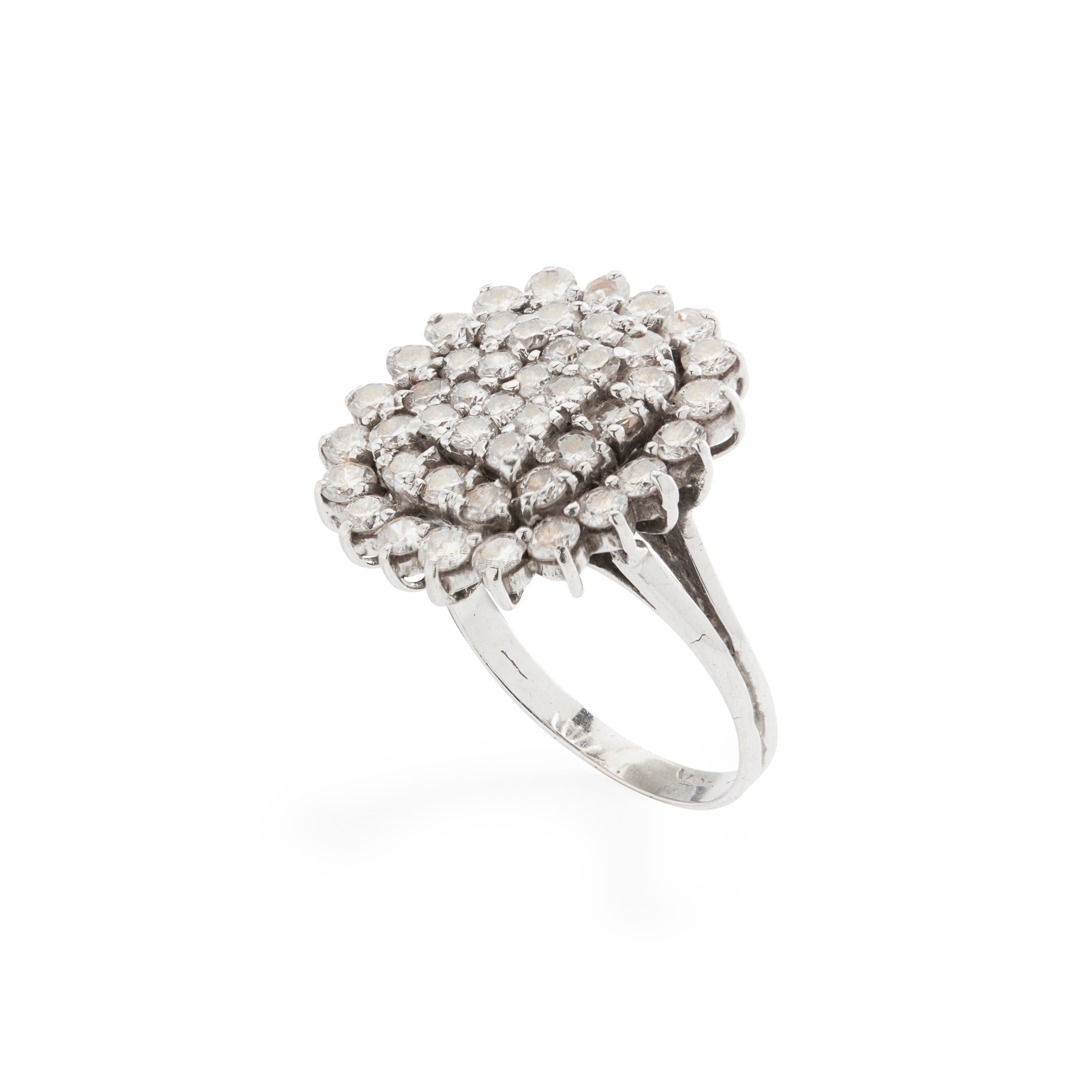 claw-set with a cluster of graduated round brilliant-cut diamonds, to a plain band, unmarked