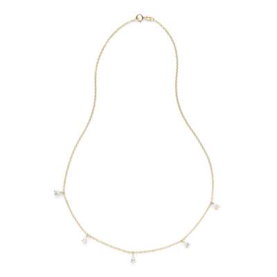composed of a trace-link chain suspending five pear-shaped diamond drops, stamped Au750