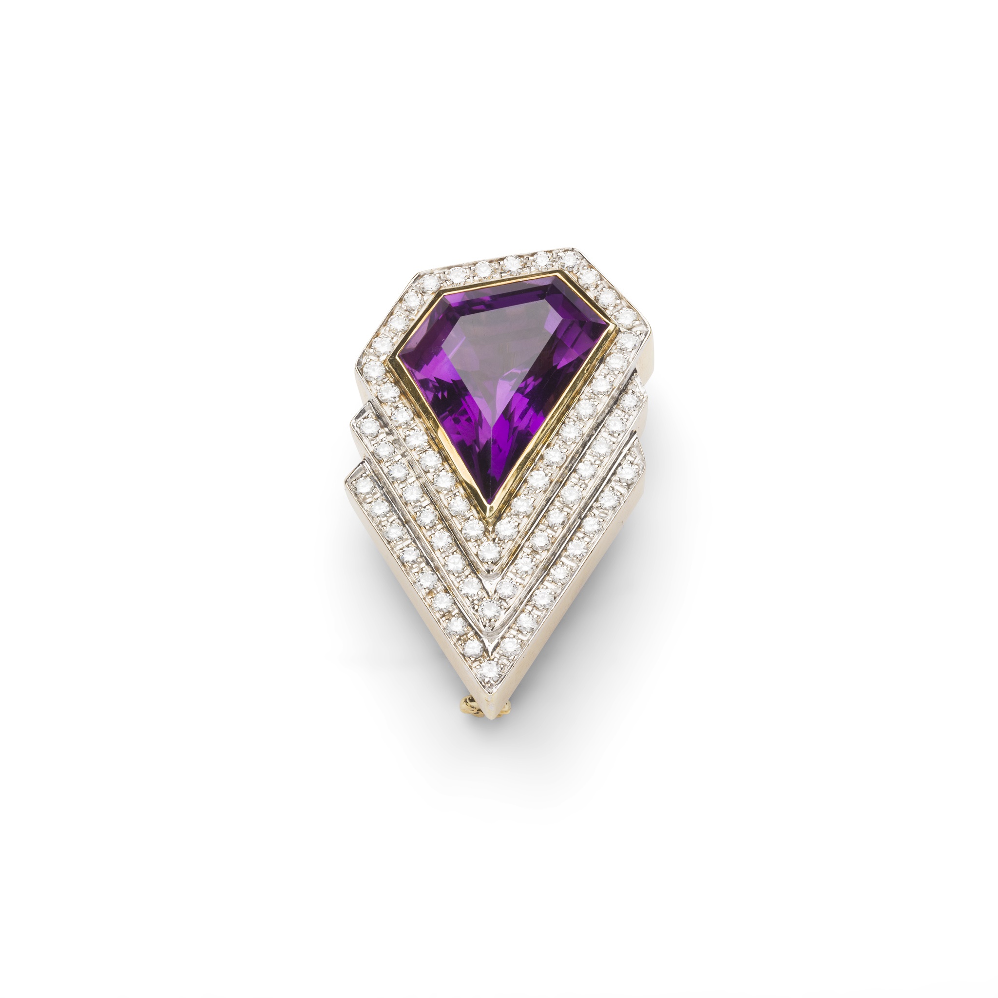 An amethyst and diamond brooch