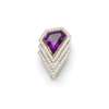 collet-set with a triangular step-cut amethyst in a stylized angular surround set with round brilliant-cut diamonds, unmarked