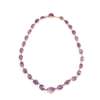 composed of a single row of graduated oval amethysts, unmarked; in a fitted tooled leather box, marked B.T 1905