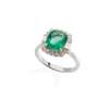 An emerald and diamond cluster ring