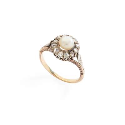 A pearl and diamond cluster ring