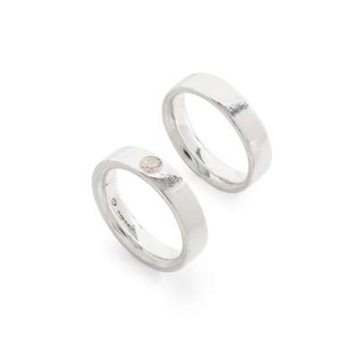 gypsy-set with a round brilliant-cut diamond in a broad band, modelled in 9ct gold; together with a matching wedding band, modelled in 9ct gold