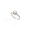 collet-set with a round brilliant-cut diamond in a border of smaller round brilliant-cut diamonds, modelled in 18ct gold