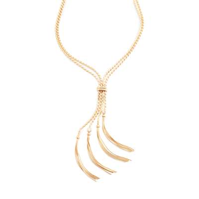 composed of two fancy-link chains ending in four tassel drops, collet-set with two round brilliant-cut diamonds, stamped 18k