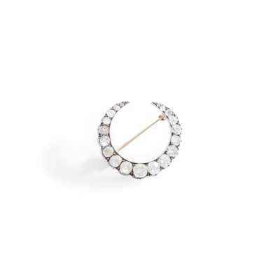 claw-set with graduated old round-cut diamonds, rose-cut diamond details, unmarked; in a fitted box for R Stewart ... Glasgow