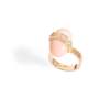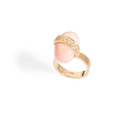each claw-set with an oval cabochon coral in a ribbed surround with small round-cut diamond detail, post and clip fittings, stamped 585; together with a matching ring set with a cabochon coral with applied pavé-set diamond detail, stamped 14K 585