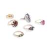 including a sapphire and diamond cocktail ring, stamped 14K; a pink tourmaline and diamond cocktail ring, stamped 18k; an emerald and diamond ring, stamped 18; a 9ct gold sapphire and diamond cluster ring, an aquamarine ring, stamped 750; and a garnet and pearl cluster ring, unmarked