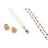 including a pair of diamond cluster earrings, post and screw back fittings, unmarked; a seed pearl and ruby bead necklace, stamped 750; and a sapphire and diamond pendant, unmarked, to a fancy link chain, stamped 750
