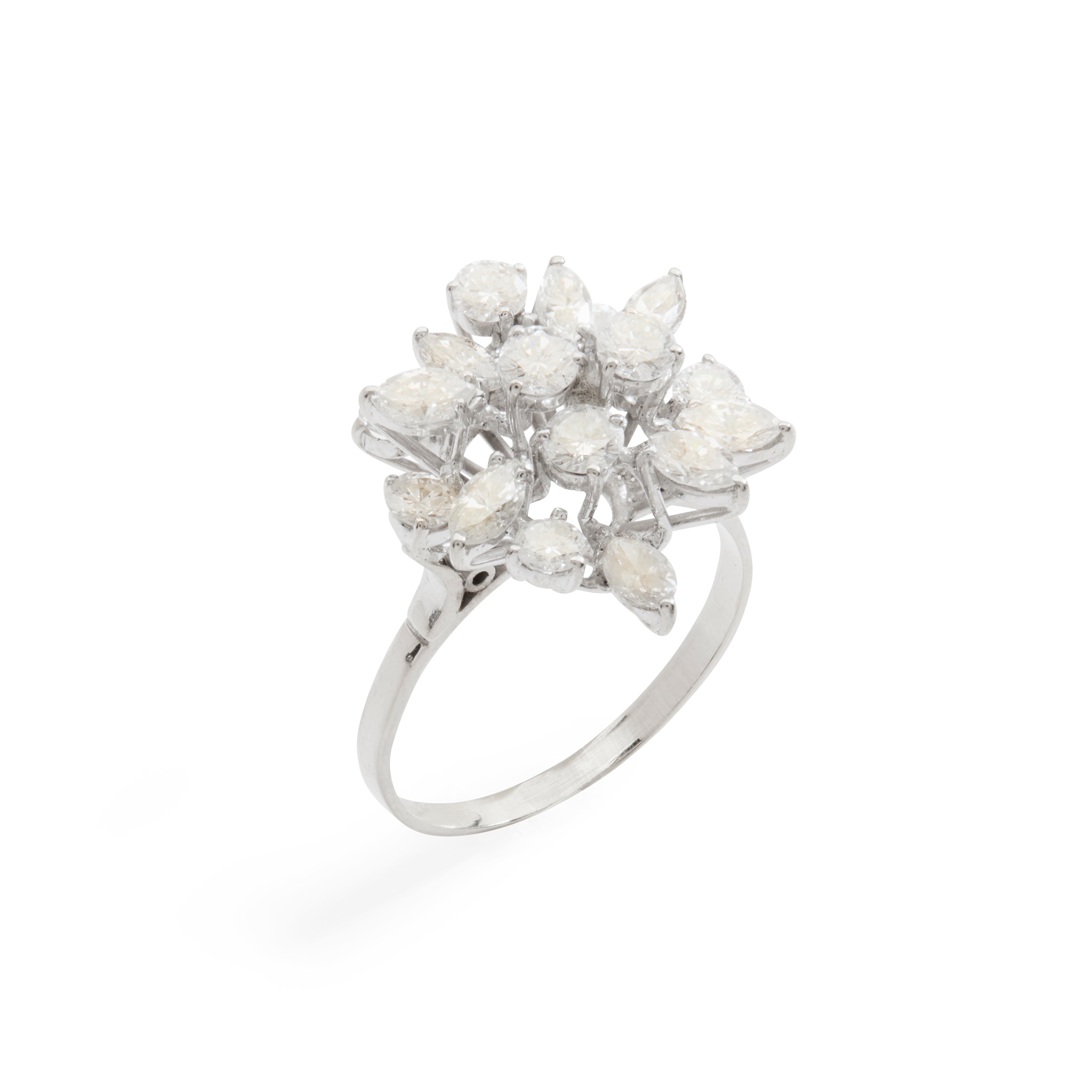 claw-set with various marquise and round brilliant-cut diamonds, stamped 18ct