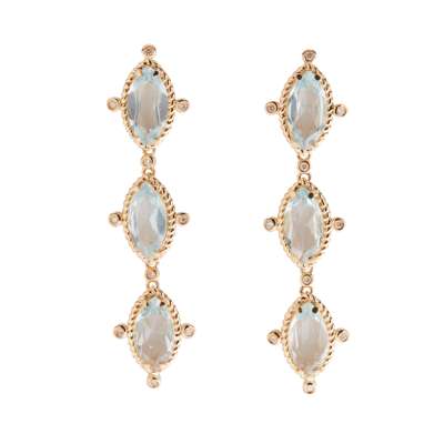each claw-set with three marquise-cut aquamarines, in a rope-twist border set with round brilliant-cut diamonds, post and butterfly fittings, stamped Au750