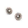 Each set with a central bouton pearl (untested), the petals set throughout with old round and rose-cut diamonds, unmarked, post and hinged clip fittings