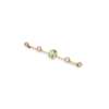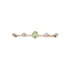 Millegrain-set with a cut-cornered rectangular step-cut peridot and four old round-cut diamonds, unmarked
