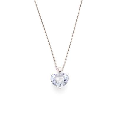 The heart-shaped rock crystal with a central recess holding a 'floating' round brilliant-cut diamond, stamped 750, signed and numbered; to a trace-link chain, also signed