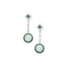 Each millegrain-set with a square step-cut emerald in a border of round brilliant-cut diamonds, suspending a drop of calibré-cut emeralds and round brilliant-cut diamonds, post and butterfly fittings, stamped 750