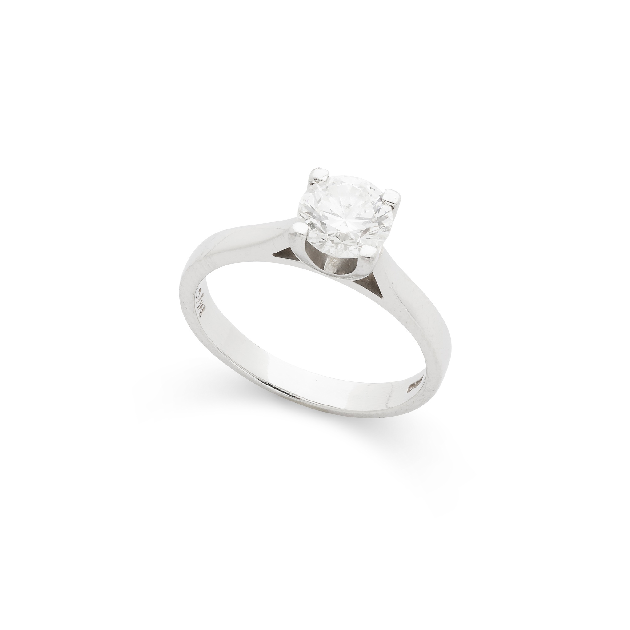 Claw-set with a round brilliant-cut diamond, weighing approximately 1.00cts, modelled in platinum