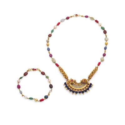 A multi-gem Indian necklace and bracelet Y
