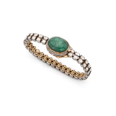 An emerald and diamond Indian bracelet
