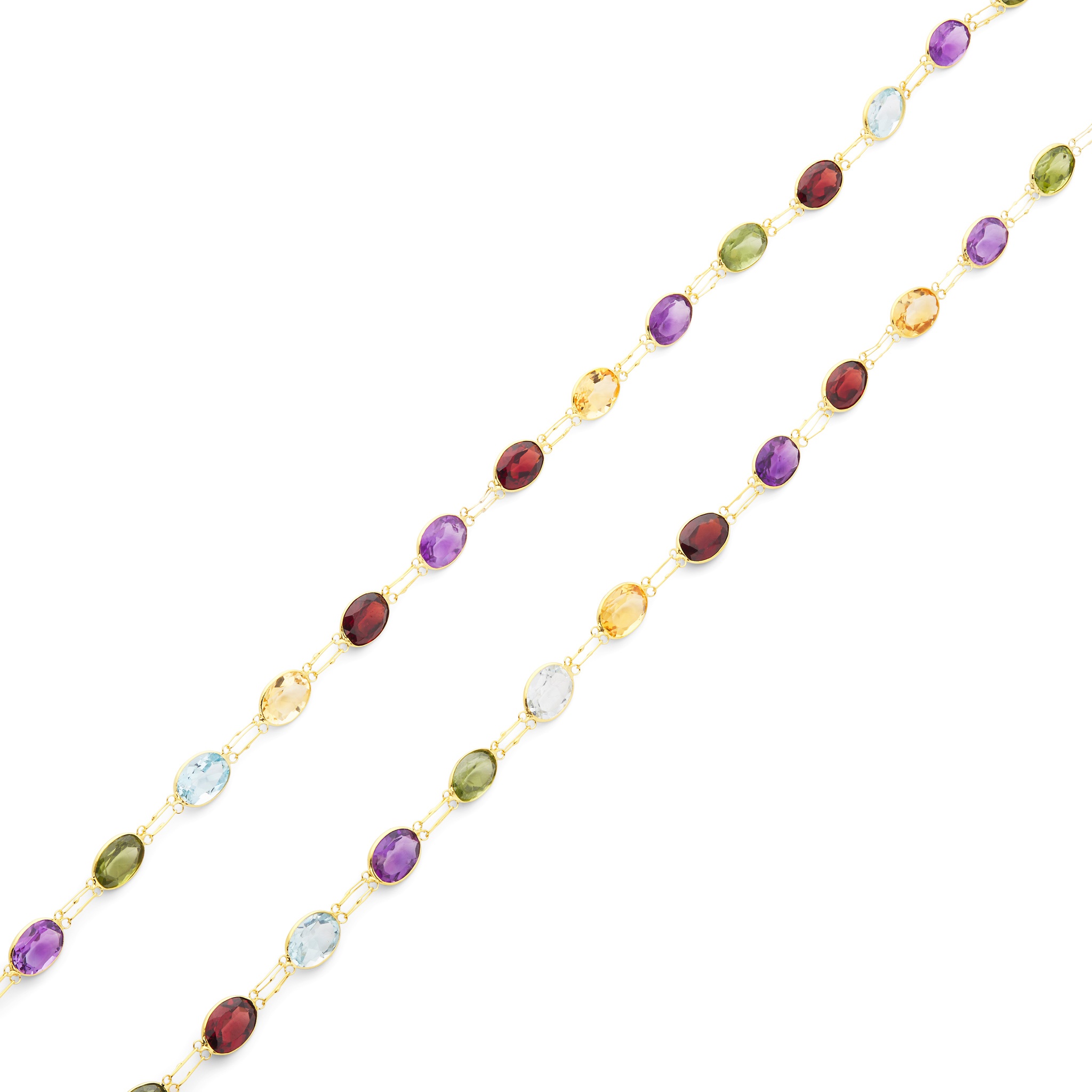 Spectacle-set with various oval-cut citrines, garnets, aquamarines, peridots and amethysts, hook clasp, stamped 585