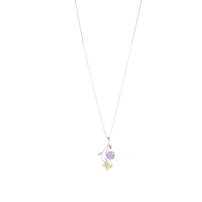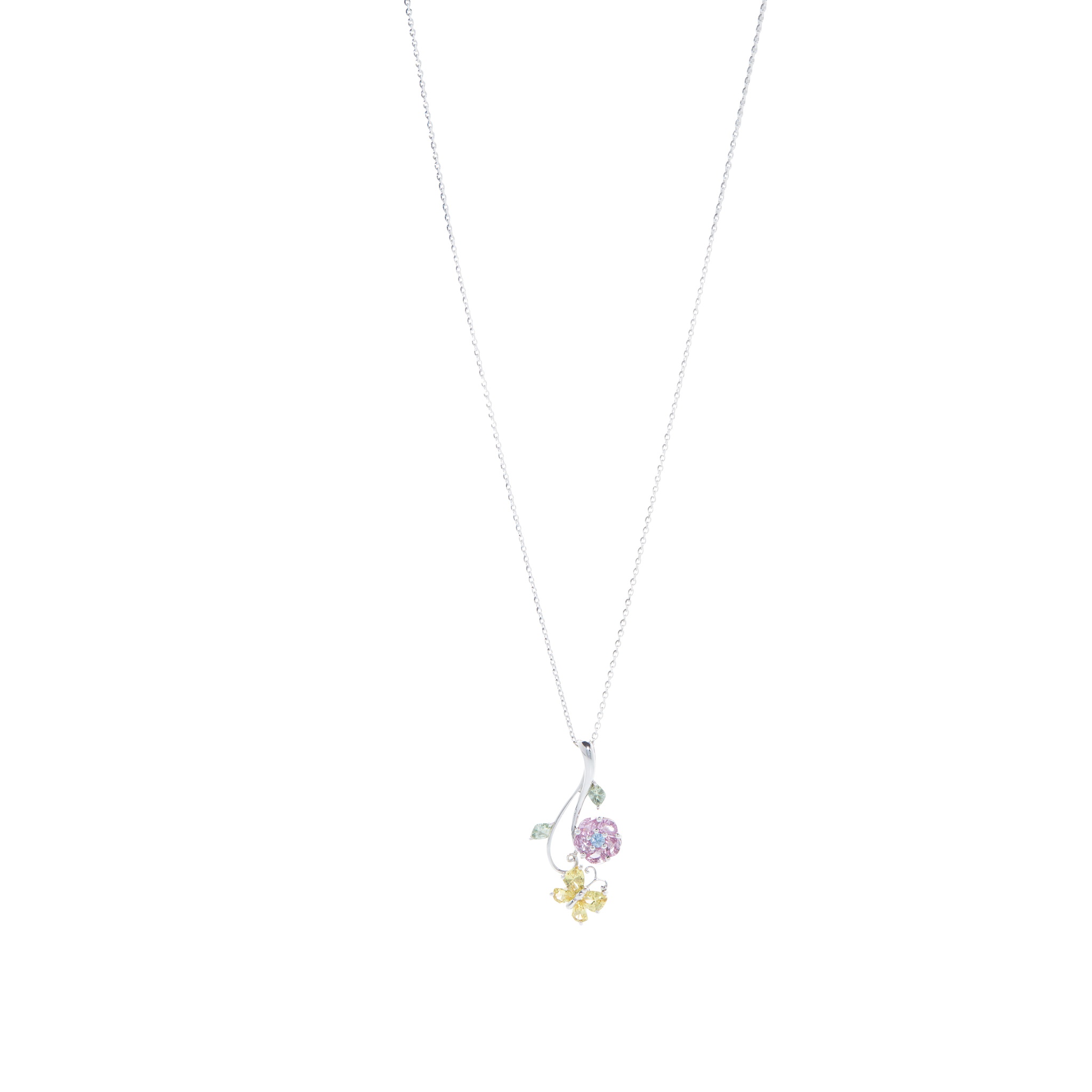 Of foliate design, claw-set with vari-cut coloured sapphires, to trace-link chain, stamped 750