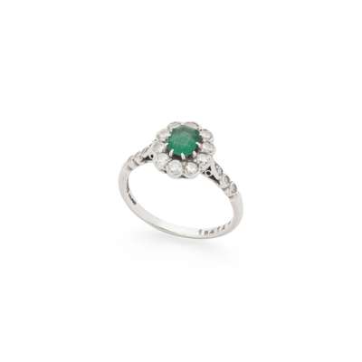 An emerald and diamond cluster ring