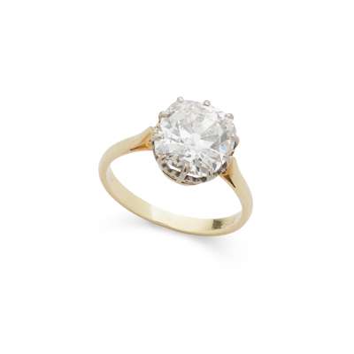 Claw-set with an old cushion-cut diamond, weighing approximately 3.80cts, stamped 18ct