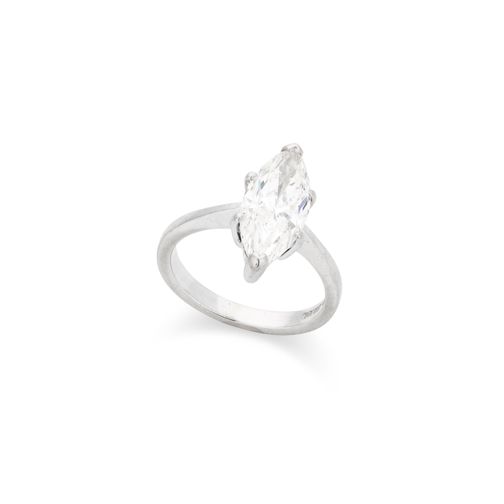 Claw-set with a marquise-cut diamond, weighing approximately 2.18cts, modelled in platinum